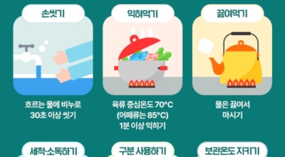 식중독균은 대체로 열에 약하며 저온에서 잘 번식하지 못하는 특성을 갖고 있어요. 그렇기 때문에 음식은 가열 조리 식품의 중심부가 85도 이상이 될 수 있도록 1분 이상 가열해서 익혀먹는 것이 좋아요. 무엇보다 중요한 것은 먹을 정도로 음식을 만들고 빠르게 섭취하는 것으로 보입니다. 남은 음식을 보관할 경우, 섭취하는 과정에서 오염되었을 가능성이 높아 넉넉하게 가열후에 보관해야 합니다.