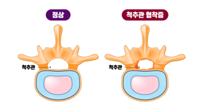 척추관 협착증이란 신경이 지나가는 통로인 척추관이 좁아진 상태를 말하며 척추관 협착증이란 용어는 주로 요추부(허리)에서 사용합니다. 척추관 협착증 환자는 정상에 비해서 척추관이 좁아져 신경이 압박받게 돼요.
