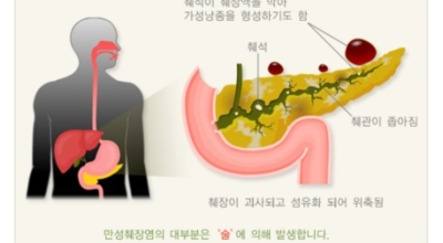 췌장염은 췌장에 염증이 발생되는 질환이지요. 이 것은 급성과 만성 췌장염으로 구분이 돼요. 급성 췌장염은 췌장의 급성 염증성 질환으로서 상복부에 매우 심한 통증을 동반, 대부분 췌장의 기능과 구조에는 손상을 주지 않으며 회복이 돼요. 가장 유명한 원인으론 담석증과 음주이지요.